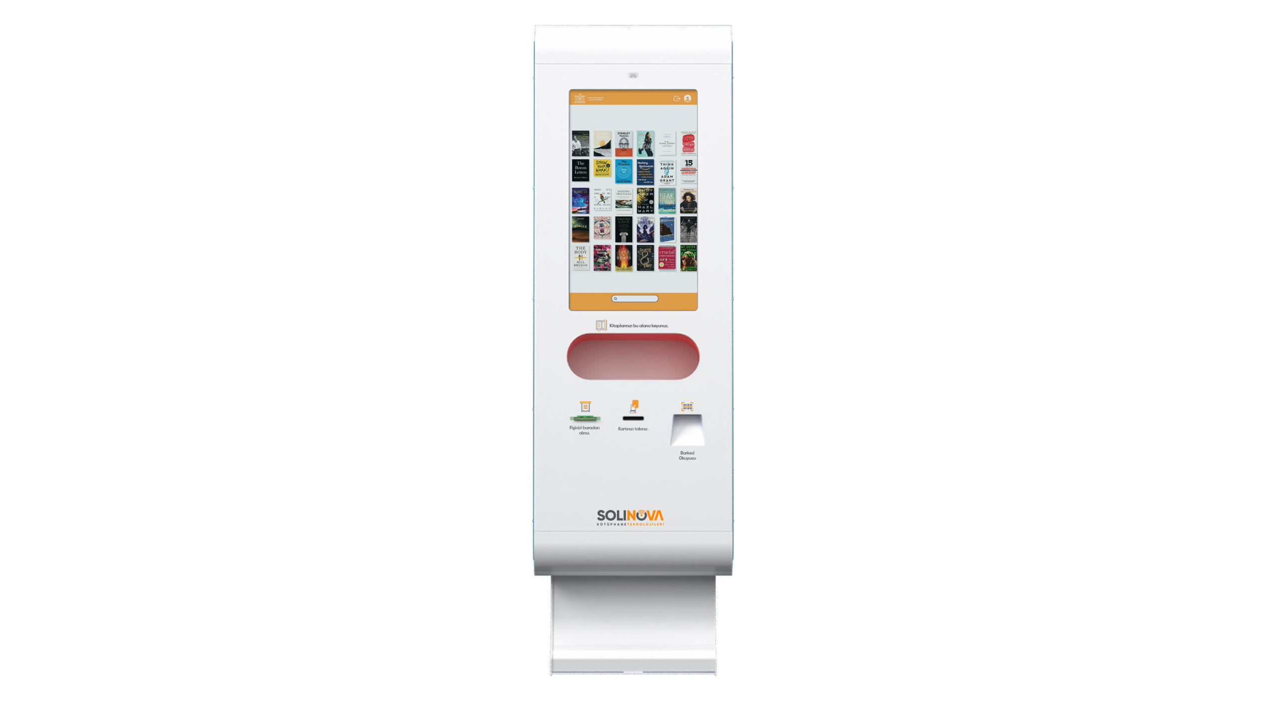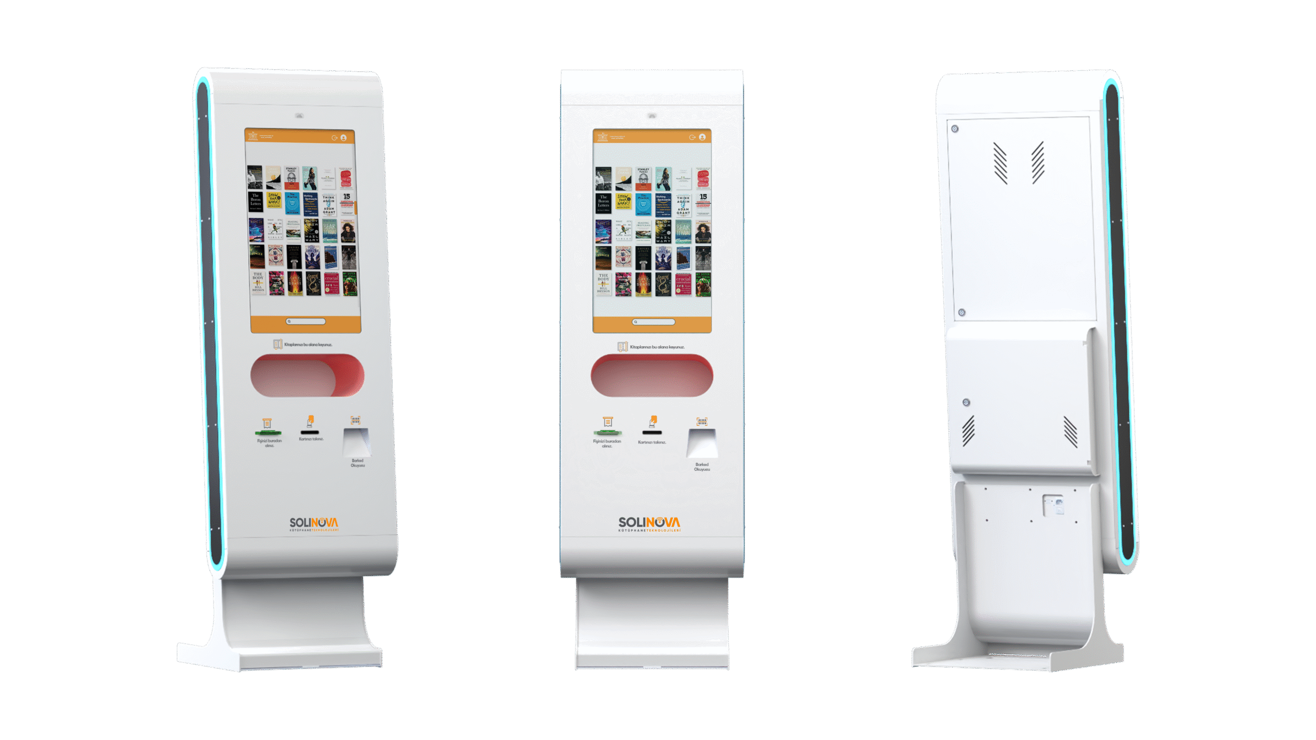 Muslular Design olarak geliştirdiğimiz Kütüphane Kiosk, Solinova Kütüphane Teknolojileri ürün ailesinin öncü ve kullanıcı odaklı çözümüdür. Sistem, kütüphane hizmetlerini hızlandırmak ve kolaylaştırmak amacıyla tasarlanmıştır. Ziyaretçiler, dokunmatik ekran aracılığıyla kitap bilgilerini tarayarak hızlı bir şekilde ödünç alma ve iade işlemlerini gerçekleştirebilir. Kurumsal yaklaşımımız sayesinde, sistem işlevselliği estetik tasarım ve ergonomi ile birleştirerek kütüphane yönetimini daha verimli hale getirir.