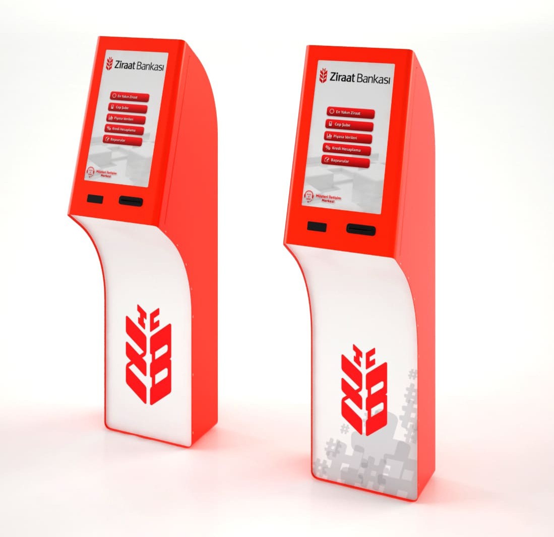 Muslular Design tarafından tasarlanan Ziraat Bankası Üniversite Şubeleri Mobilyaları, üniversite şubelerinde müşterilerin hızlı ve pratik bir şekilde bankacılık işlemlerini gerçekleştirmelerini sağlamak amacıyla geliştirilmiştir. Ziraat Bankası Üniversite Şubeleri Mobilyaları, kullanıcı odaklı ergonomik tasarımıyla dikkat çeker ve geleneksel kiosk kalıplarından farklı olarak şube içi deneyimi optimize eder. Doğru uzayan formu, kullanıcıların doğal hareket alanına uyum sağlayarak işlemlerin hızlı ve hatasız tamamlanmasına olanak tanır. Malzeme seçimi ve yüzey kaplamaları, dayanıklılık, uzun ömür ve hijyenik kullanım kriterleri göz önünde bulundurularak belirlenmiştir. Modüler yapısı sayesinde bakım, güncelleme ve farklı şube tasarımlarına hızlı adaptasyon sağlanır. Dokunmatik arayüz, kullanıcıları adım adım yönlendirir; ayrıca entegre bilgilendirme ve yönlendirme ekranları, şube deneyimini zenginleştirir.